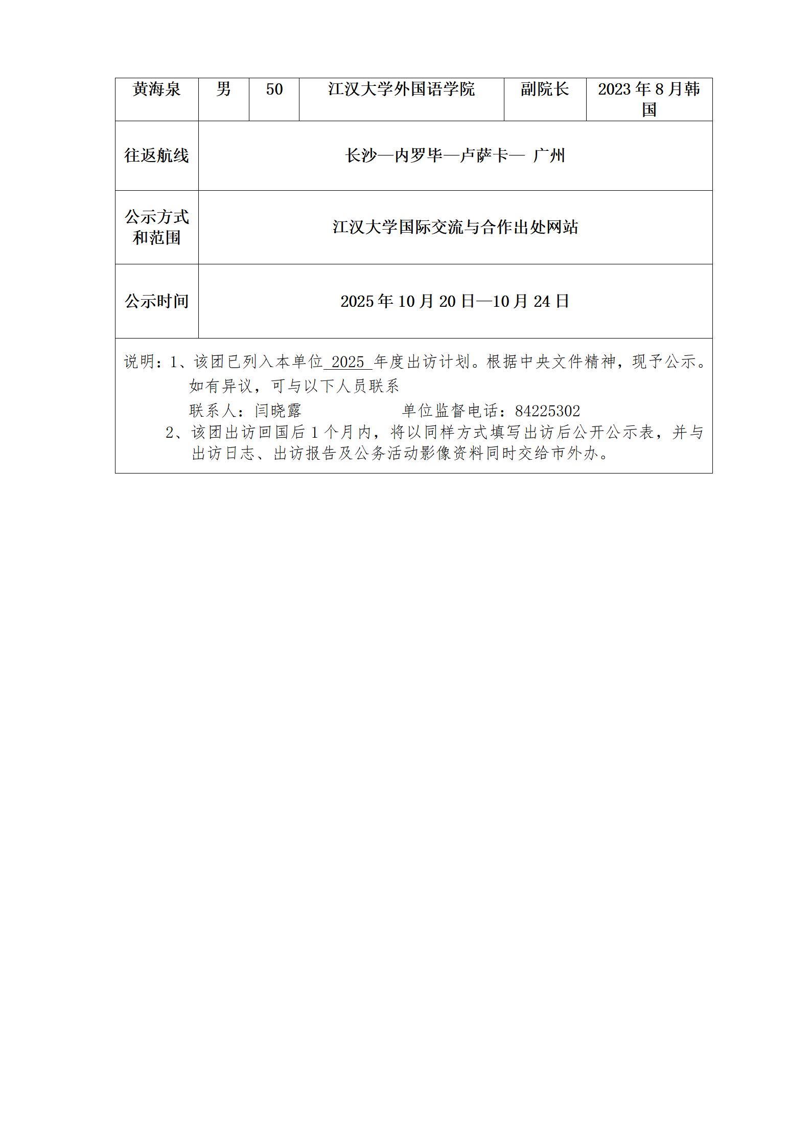 景新华团组 因公临时出国(境)团组和人员信息公开公示表 (出访前)