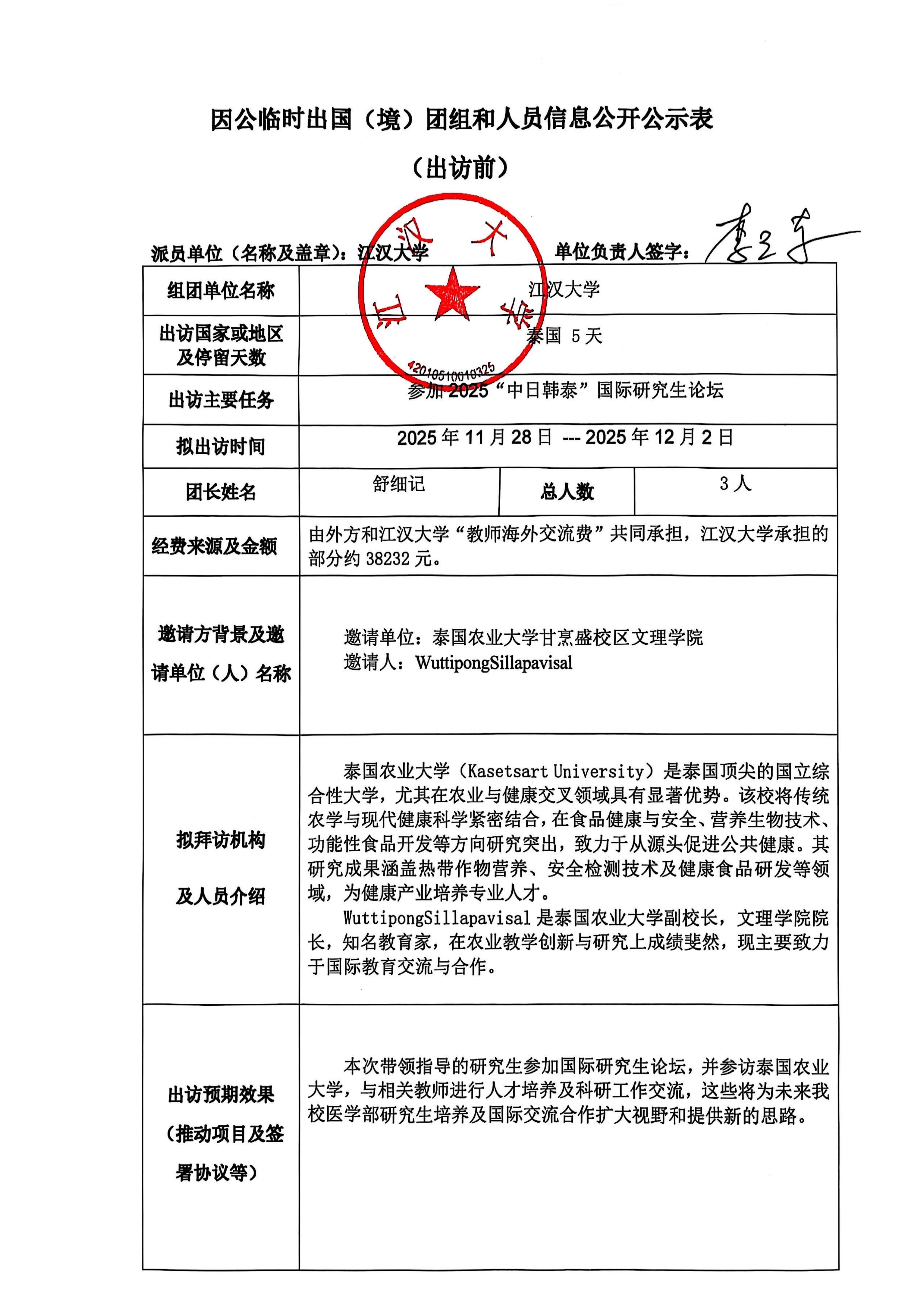 舒细记团 因公临时出国(境)团组和人员信息公开公示表 (出访前)
