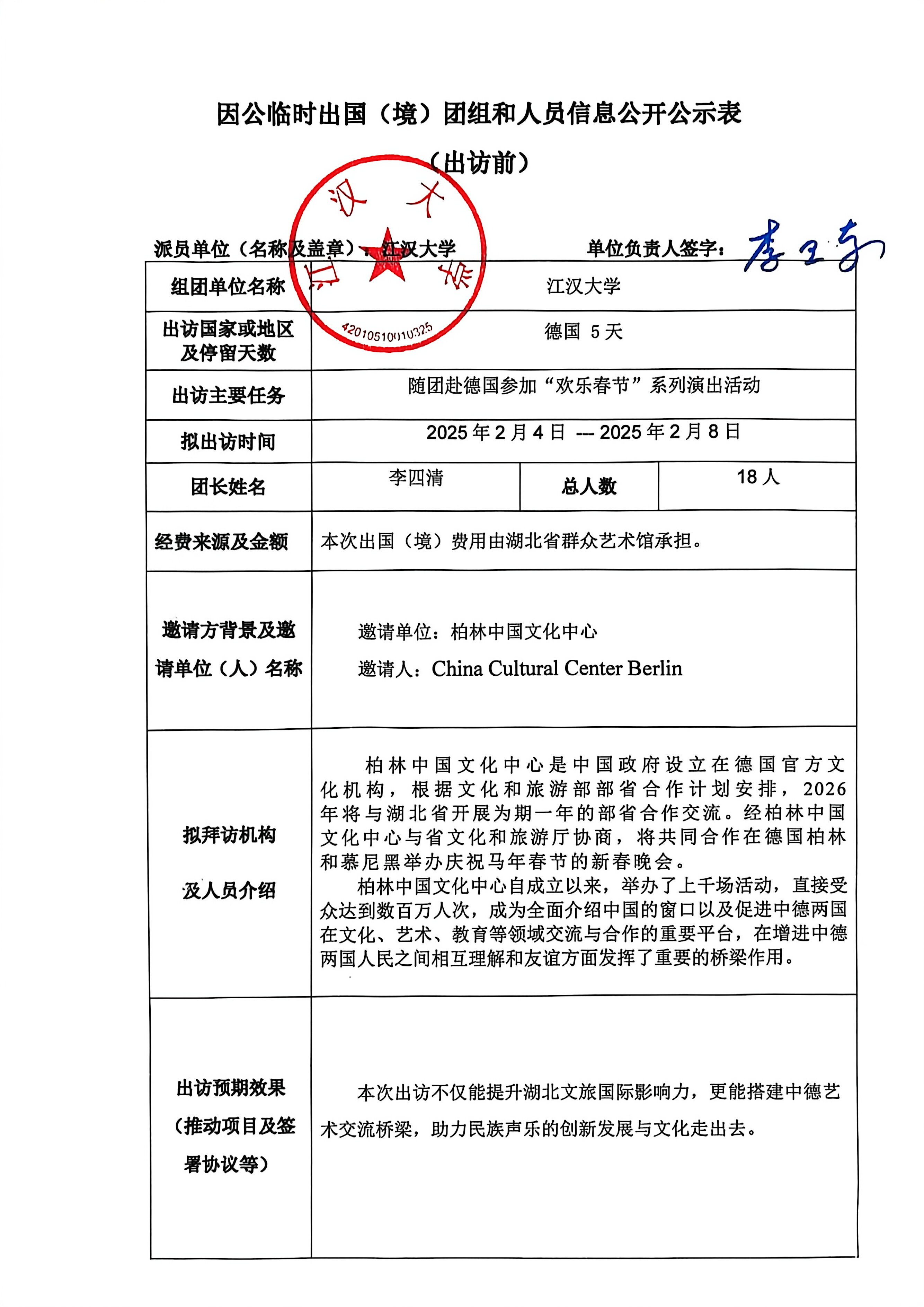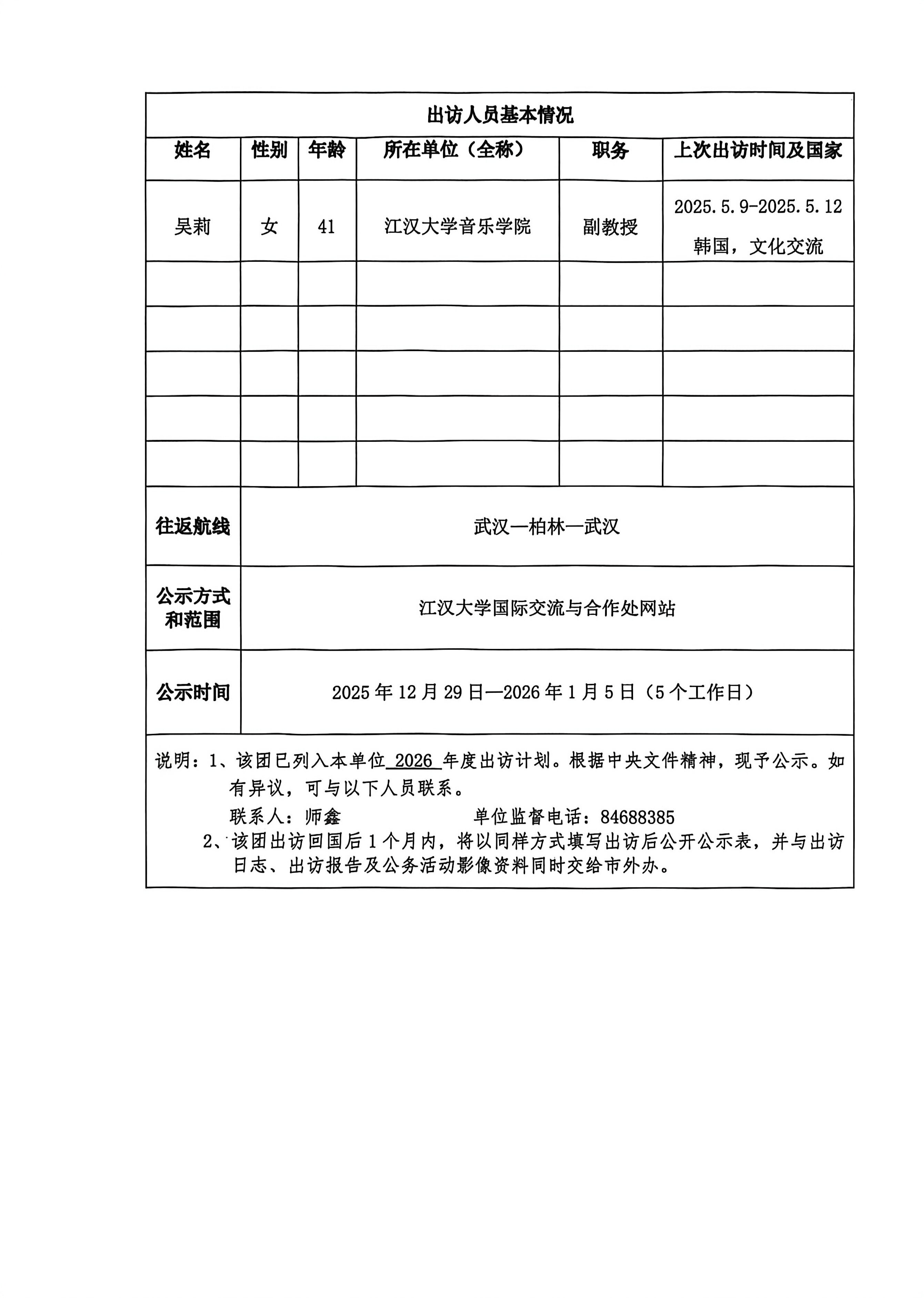 吴莉团组 因公临时出国(境)团组和人员信息公开公示表 (出访前)