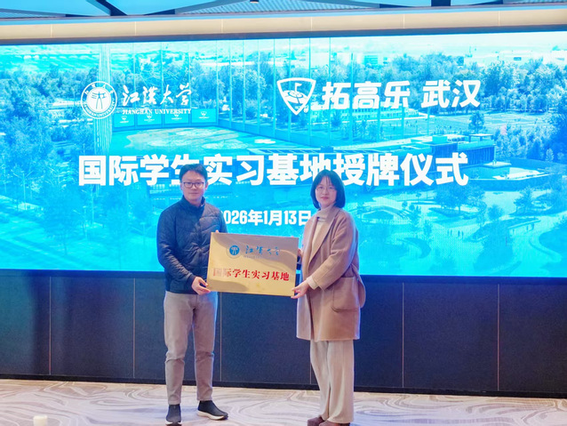 近日,江汉大学国际教育学院与拓高乐(武汉)体育文化发展有限公司在拓高乐(武汉)举行国际学生实习基地授牌仪式,校企携手搭建国际学生实践育人新平台。