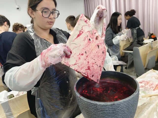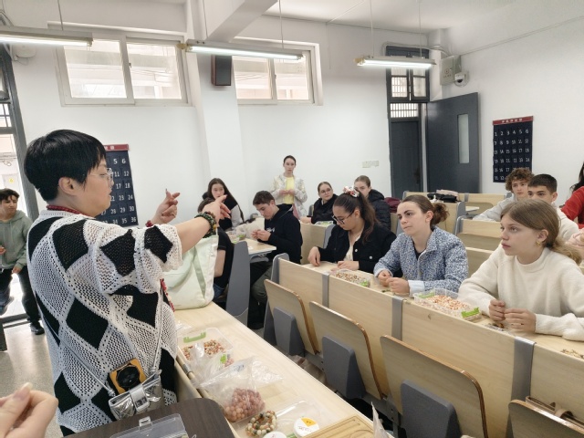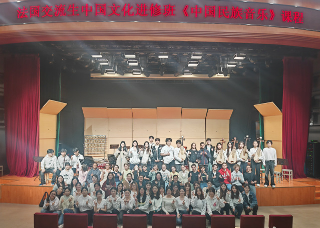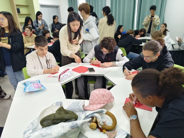 国际处精心统筹安排了多场特色课程与实践体验活动,内容丰富、形式多样。法学院戴静老师开设沉浸式非遗课堂,带领师生体验漆艺与手串制作,体会传统工艺之美;外国语学院法国外教Karine带来融合文化课,以剪纸、趣味互动游戏拉近中法学生距离;美术学院明媚老师开展中国画创作体验,引导法国师生感受传统绘画意蕴;体育学院何亚斌老师指导师生体验龙舟运动,让大家在协作划桨中理解集体精神;音乐学院胡婷婷老师带来民族乐器体验,通过现场演奏、亲手试弹,让法国师生沉浸感受中国民族音乐的独特意境。