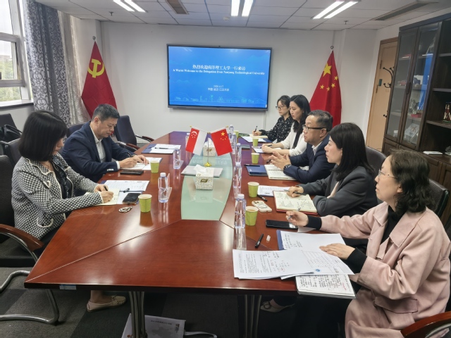 2026年4月17日下午,江汉大学与南洋理工大学合作交流会在行政楼303室顺利举行。会议由江汉大学国际处处长陈凯主持,江汉大学组织部、人事处、国际处相关负责人,南洋理工大学南洋公共管理研究生院副院长王航、项目主任黄爽共同参会。双方围绕师资研修、干部培训、学生交流等议题深入洽谈,达成多项合作共识。