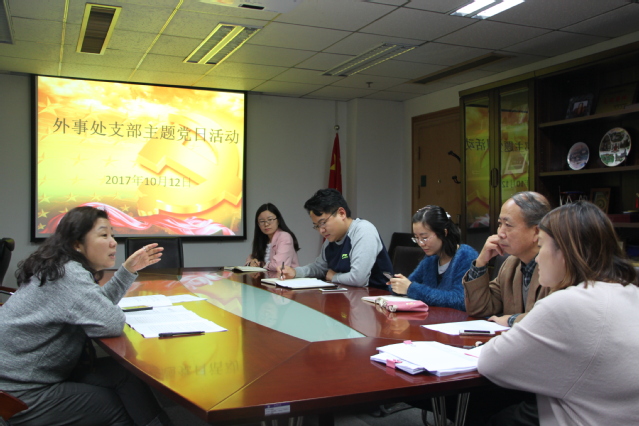 2017年10月12日下午,外事处党员齐聚行政楼303会议室,专题学习习近平总书记推进生态文明建设的理论。