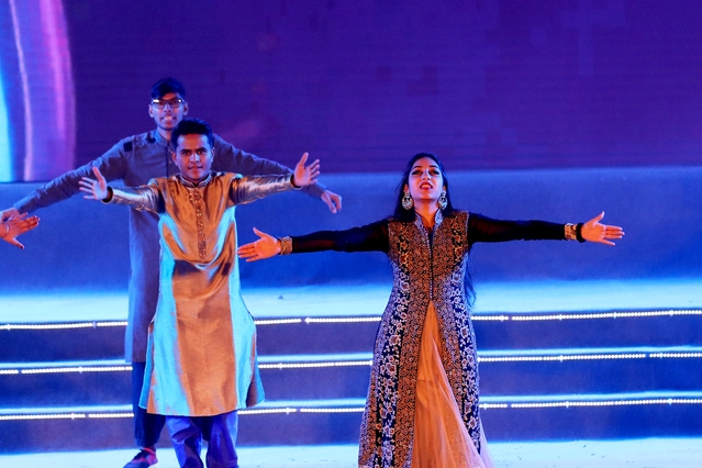 国际教育学院组织来自印度、巴基斯坦、赞比亚、加纳、津巴布韦等10多个国家的100多名国际学生参加了晚会,其中有20人登上了舞台,为现场的师生献上了精彩的歌舞 Colourful Notions。