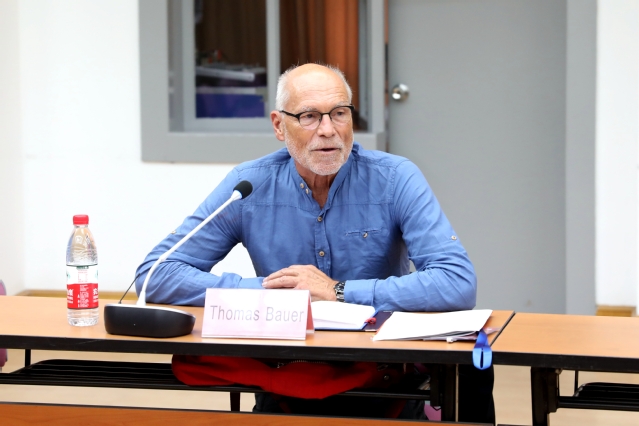 9月4日上午,在行政楼216会议室举办了2017年江汉大学暑期大学开学典礼,副校长李卫东、奥地利维也纳大学托马斯·鲍尔教授等出席开学典礼并致辞,同时出席开学典礼的还有我校教务处、研究生处、外事处、商学院、国际教育学院等部门和学院的负责人、国际电子科学协会的专家以及暑期大学学员和暑期大学志愿者。开学典礼由商学院副院长陈磊主持。