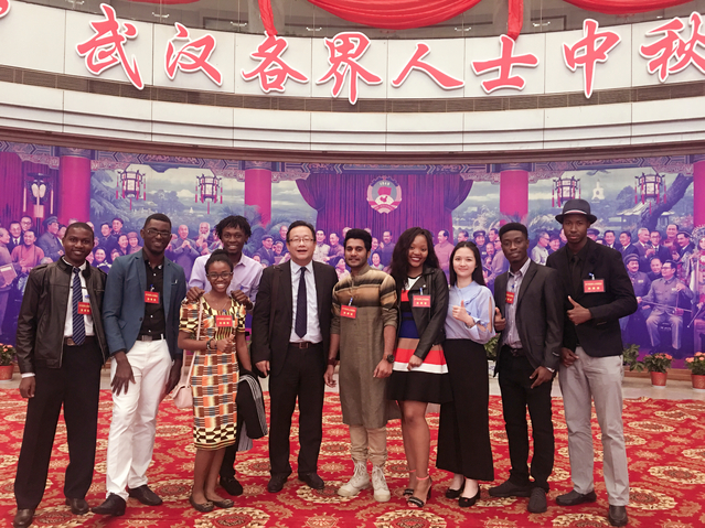 9月29日下午,在中秋佳节来临之际,为弘扬中华民族传统文化,加强武汉各界人士之间的交流,受武汉市政协邀请,我校外籍专家、国际学生代表在国际教育学院副院长陈凯的带领下,赴武汉市政协机关一楼常委会议室,参加了“2017年武汉各界人士中秋联谊会”。